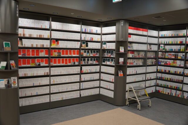新書のコーナーは、充実。かなりの品ぞろえなので、専門的なことの入門書を知りたいときにはまずこちらに行ってみてはいかがでしょうか。