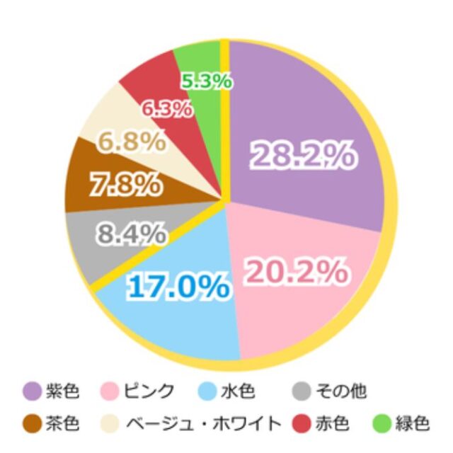 昔はランドセルといえば男の子が黒、女の子が赤と決まっていましたが、今や人気カラーも多様化の一途をたどっています。カラーも様々。今回女の子の一番人気は紫。