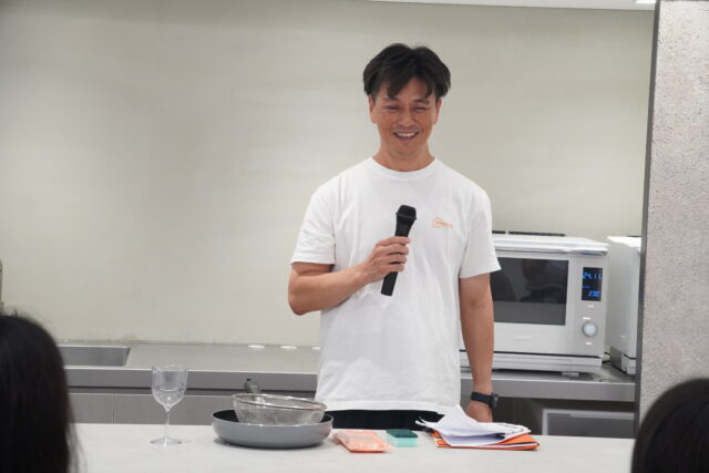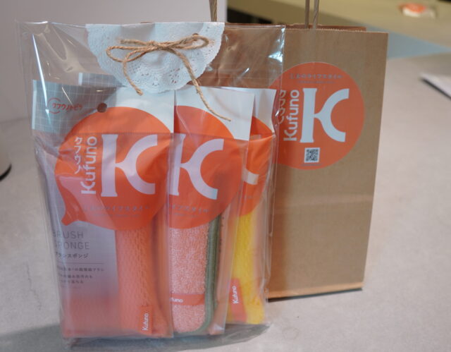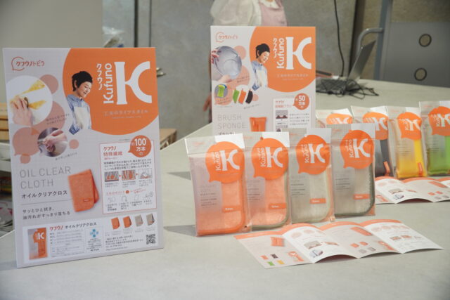 レッスンの後は株式会社クフウノトビラの福谷代表取締役よりご挨拶がありました。株式会社クフウノトビラとはあまり聞いたことのない社名でしたが、母体は業務用のキッチンスポンジや衛生ふきん、使い捨てのポリエチレン手袋などの食品加工用の衛生資材メーカーとして50年以上の歴史を持つ「丸善化工」という会社であるとのこと。