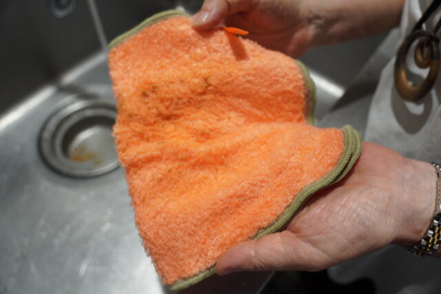 ふき取ったクロスはシンクで水洗いをするだけで油汚れもスッキリ取れました。