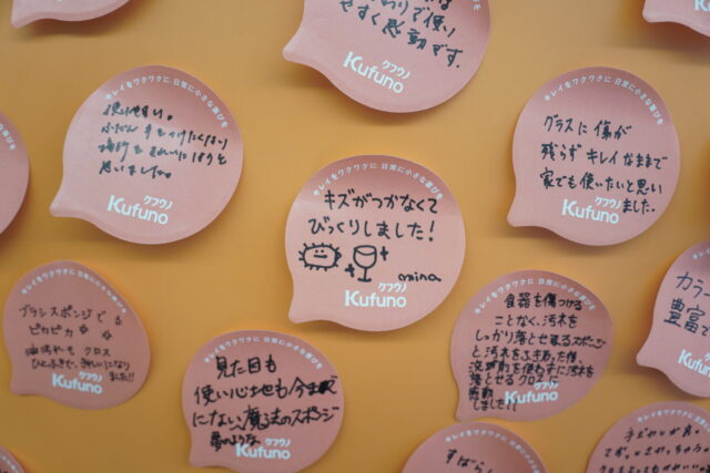 配られた付箋に商品の感想など一言メッセージを添えたり、参加者同士写真を撮り合うなど、和気あいあいの雰囲気の中、無事イベントは終了しました。