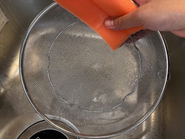 帰宅後自宅でためしてみました!ざるを洗うのも楽しくなりそう。