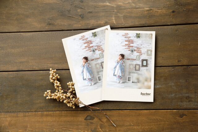愛知・三重にスタジオが5店舗ある「photo maison toctoc」では、2025年10月1日から期間限定で 「七五三スペシャルパック」 を発売中。撮影データ全カット(55カット)に、A5サイズ相当&10ページ10カットのミニブック2冊がセットになったお得なプランです。ミニブックは同じ内容が2冊なので祖父母へのプレゼントにしたり、将来子どもが巣立つときに1冊を親の手元に残し、1冊を子どもに持たせたりすることもできますね。
