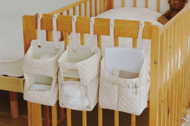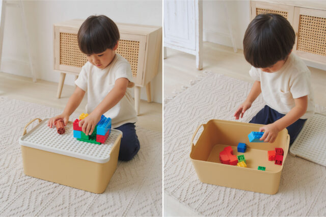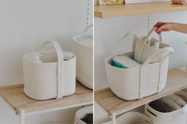 ベビーベッドにかけて使用するおむつ収納ボックス、保湿剤や綿棒などの赤ちゃんのお世話セットをまとめて収納できるロープバスケット、ブロック収納ボックスなど、家族が増えるにつれてあふれる荷物を、すっきり使いやすく収納できます。