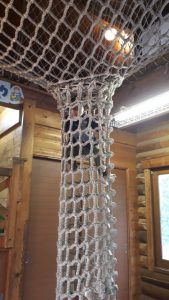 屋根裏部屋のような作りの2階では、ネットのすきまから下を覗けたり、隠れるスペースがたくさんあって、ワクワクドキドキ。