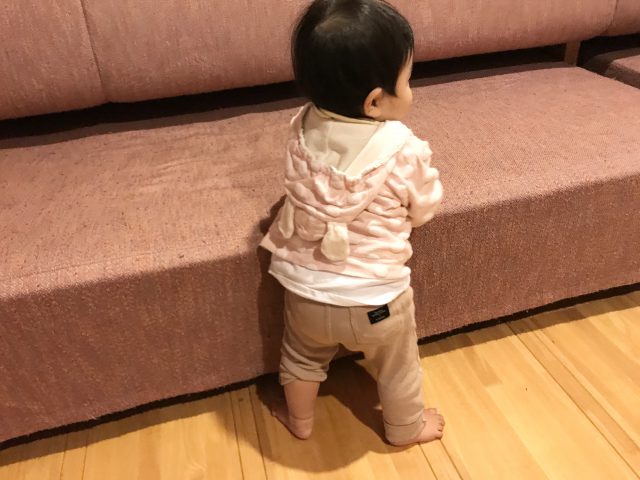 0歳の娘はソファーベッドのつたい歩きに夢中!