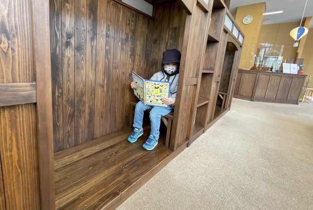 おこもり感を味わえる読書ブースが設置されるなど、本を読みたくなるような仕掛けもいっぱい。久しぶりに読み聞かせをしてあげると、最近文字が読めるようになった息子は「僕も読むよ」と半分読み聞かせてくれました。