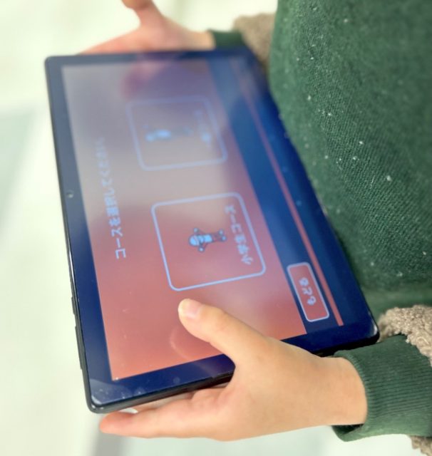一方息子は思ったよりも怖がることはなく、「災害時、こんな時どうする?」を選ぶ「防災クイズ」を解くことに夢中な様子でした。タブレットのカメラをARマークに合わせると、被災時の危険な状況が説明とともに再現される様子にも大興奮!