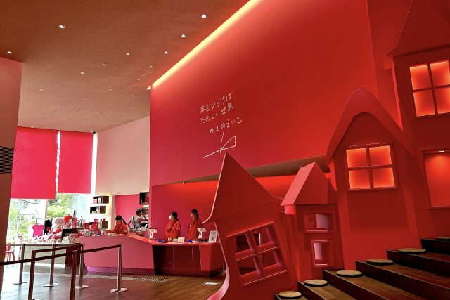 純白の建物の中は、アートプロデューサーのくぼしまりおさんが内装デザインをしたという「いちご色」の世界が広がっていました。