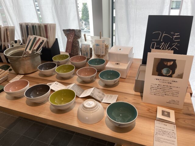 最後に紹介したいのは、楽しかった思い出を持ち帰って余韻にひたれるお店です。東京初出店の「アンドローカルズ」は、福岡に5店舗あり地域のこだわりのアイテムをセレクトしたお店です。NorthとSouthを結ぶ4Fの連絡通路にあるのですが、調味料や雑貨など九州各地のおいしいだけじゃない安心安全なこだわりの商品ばかり。例えば、子ども用茶碗として有名なのでご存じの方も多いかと思いますが、有田焼の「ノコサナイ茶碗」の実物を手に取って購入することができます。