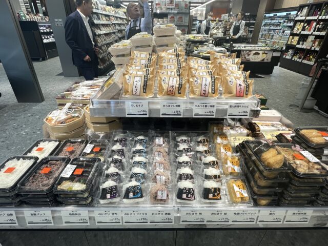 高輪ゲートウェイ駅と反対の泉岳寺駅側には、North 1Fに「明治屋」、South 1Fには「成城石井」があり、総菜や弁当、サンドウィッチなどのパン類も豊富でした。近くには広い公園もあるので、こちらで食料を調達してから行くのにも便利ですよ。また広めのドラッグストアもあり、ベビー連れでも慌てず安心して遊びに行けますね。