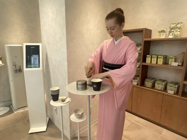 そして、「THE MATCHA TOKYO」をご存じですか? NEWoMan SHINJUKUにも店舗があり、おいしいお抹茶をいただけます。ニュウマン高輪店は物販専門ですが、この日は特別に目の前で上質でまろやかなお抹茶を点てて下さいました。