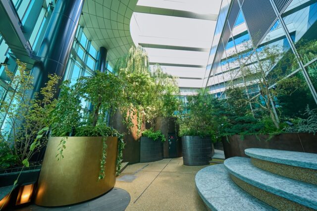 本物のグリーンを利用した森のようなパブリックガーデン、和を感じられるしつらえのイベントスペースなどがあり、他店のスタッフもおすすめしていた通り見ごたえがありました。お散歩にも良いですし、無料でこの景色が楽しめるのは素晴らしいですね。