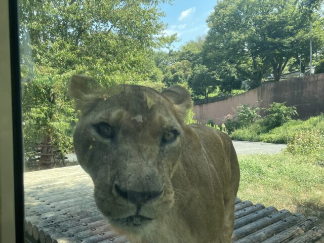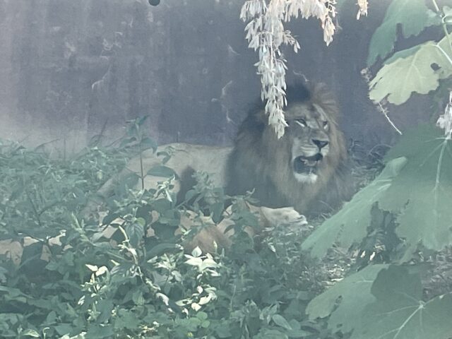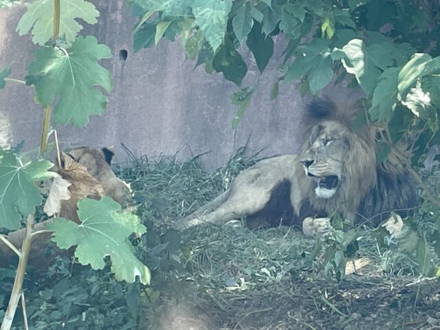 この日は暑くて休憩しているライオンもいましたが、オスライオンがメスライオンと散歩する姿も確認でき、大盛り上がりでした。こんな体験が都内でできるとは思わなかったので、スリル満点の体験ができ、親子で大興奮。とても人気のエリアなので、チケットは早めに購入しましょう。
