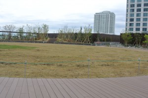 施設の屋上などに庭園や池が4か所あります。また、リボンロードの奥には広大な公園が!